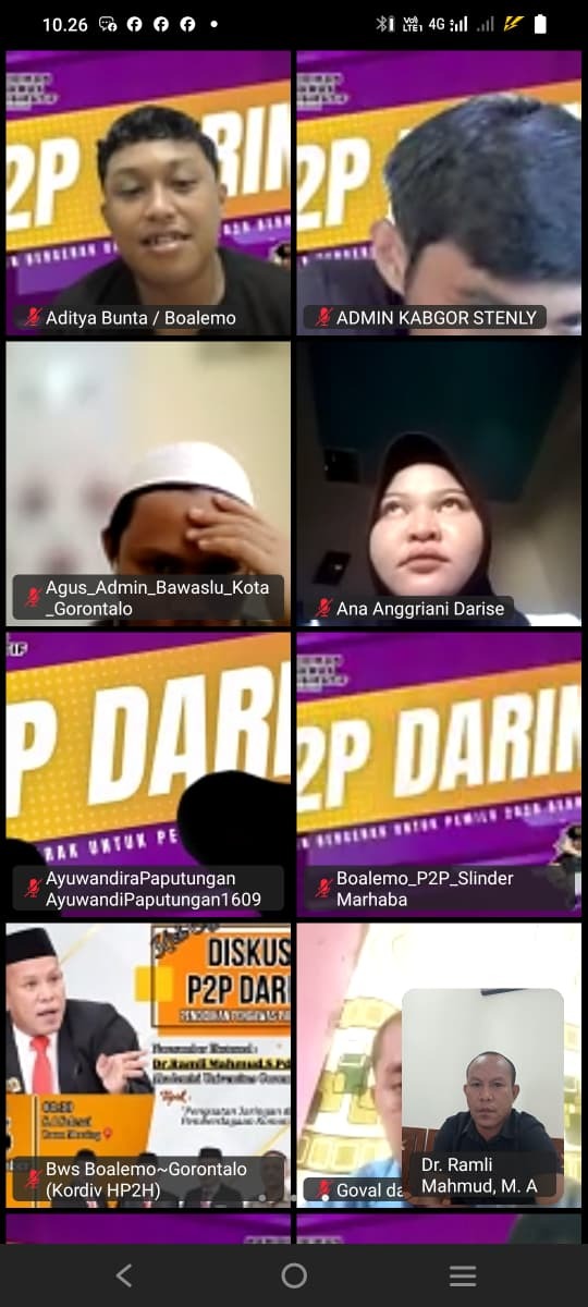 Melalui kegiatan P2P Daring ini, Bawaslu Provinsi Gorontalo berharap lahir lebih banyak kader pengawas partisipatif yang memiliki literasi politik memadai, kemampuan teknis, serta kepekaan sosial dalam memantau setiap tahapan pemilu.