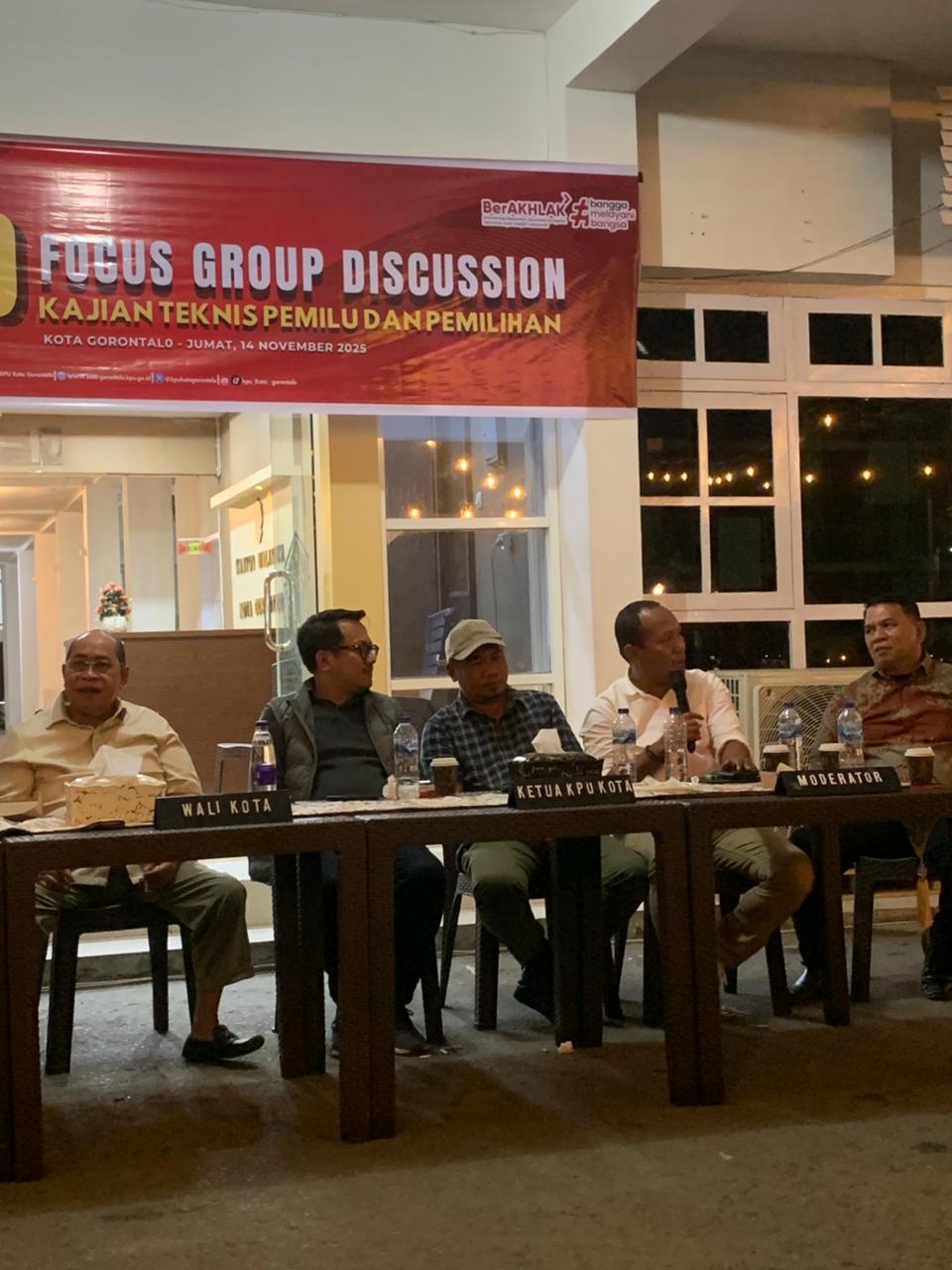FGD yang dilaksanakan pada Jumat, 14 November 2025, pukul 19.30 WITA di Pelataran Kantor Wali Kota Gorontalo tersebut menghadirkan narasumber kunci sekaligus pakar kepemiluan yaitu Dr. Ramli Mahmud, S.Pd., M.A., akademisi sekaligus Ketua Jurusan IHK-PPKn FIS UNG yang dikenal dengan analisis kritis dan perspektif ilmiahnya terkait perilaku politik birokrasi dan tata kelola demokrasi dan pembinaan kelembagaan publik.